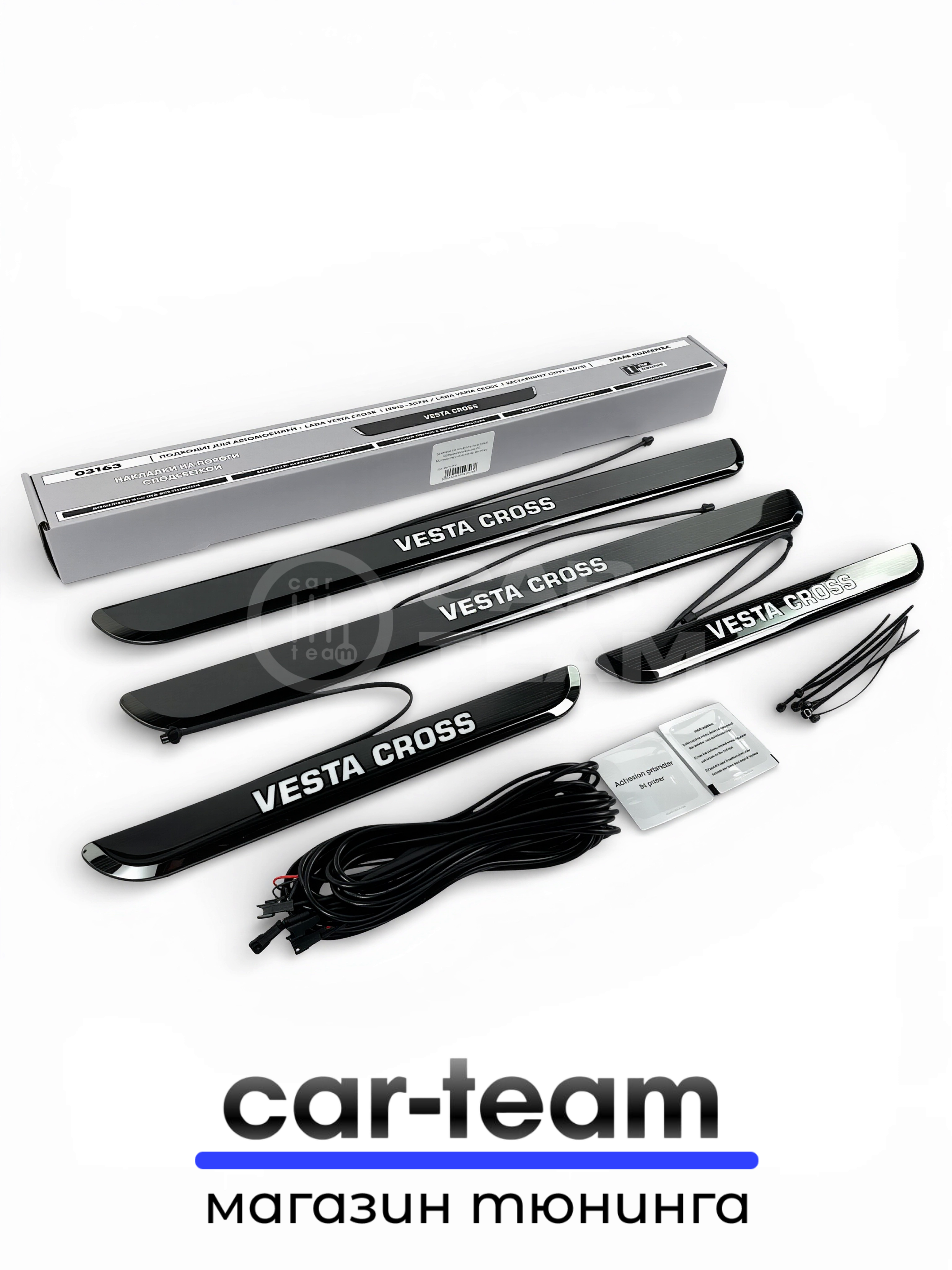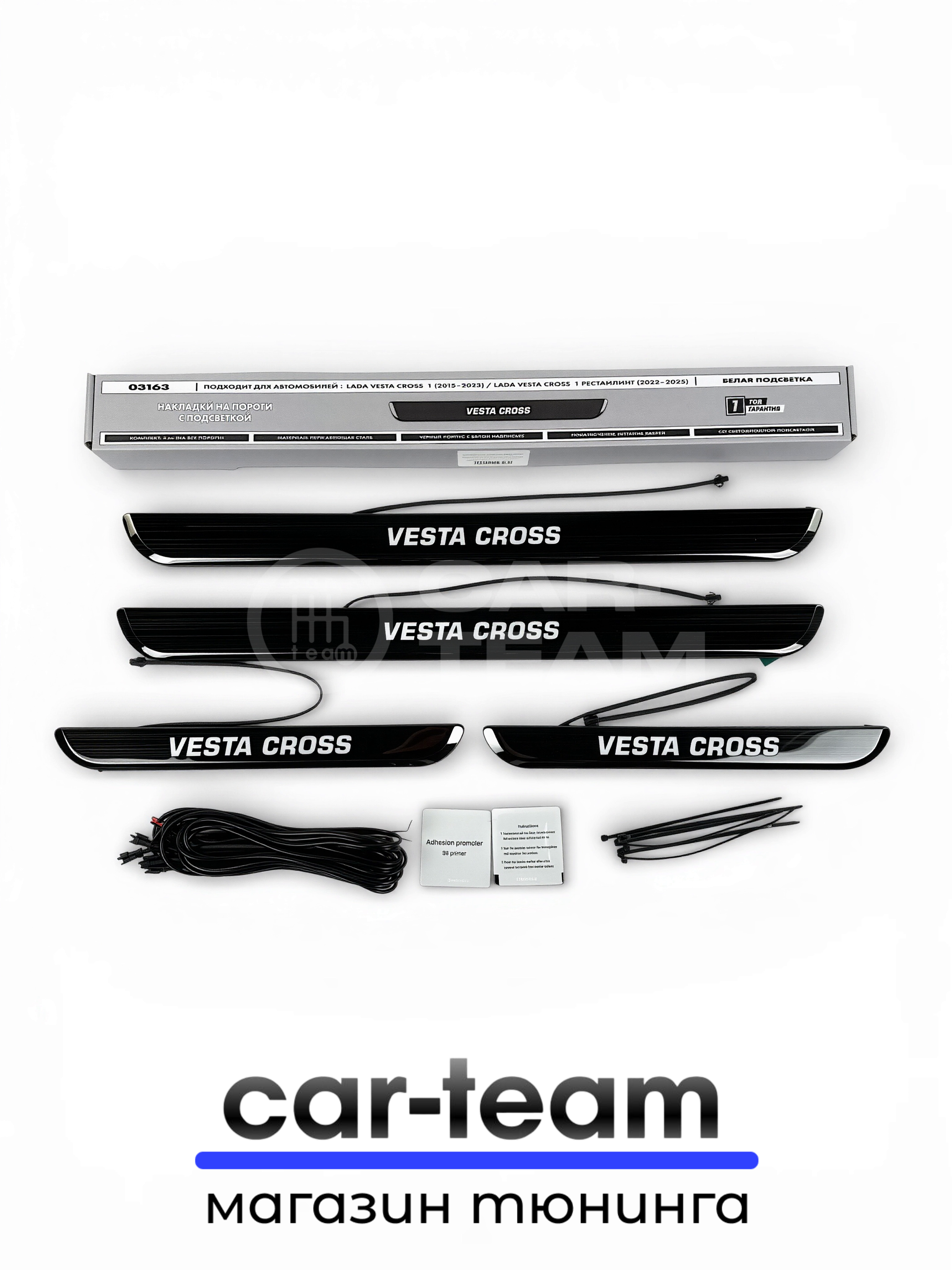 CAR-TEAM.RU дает гарантию на товары из своего каталога. “Накладки на пороги на Лада Веста Кросс светодиодные LED, ABS-пластик, белая подсветка (4шт)” будет исправно работать по своему предназначению.