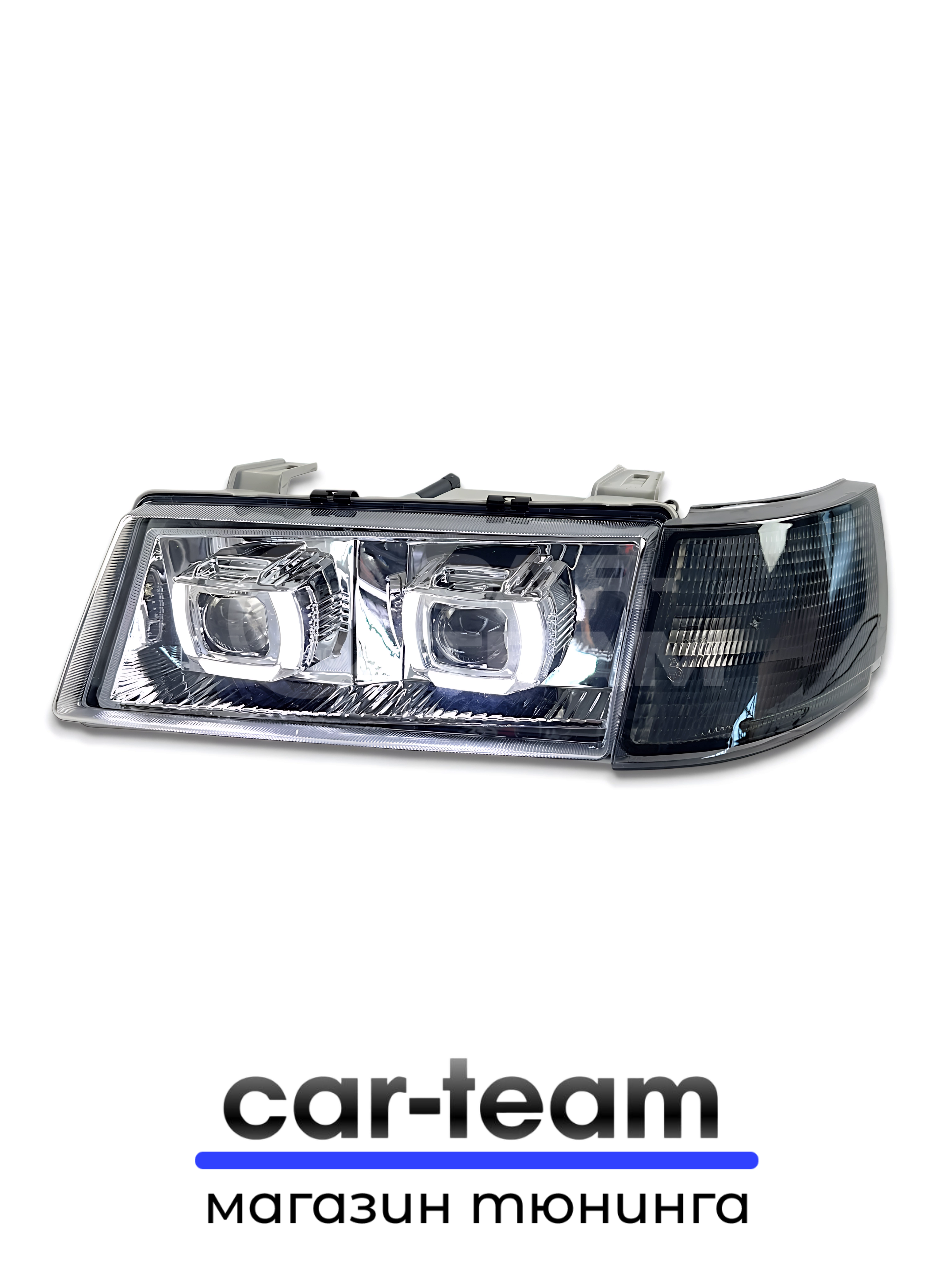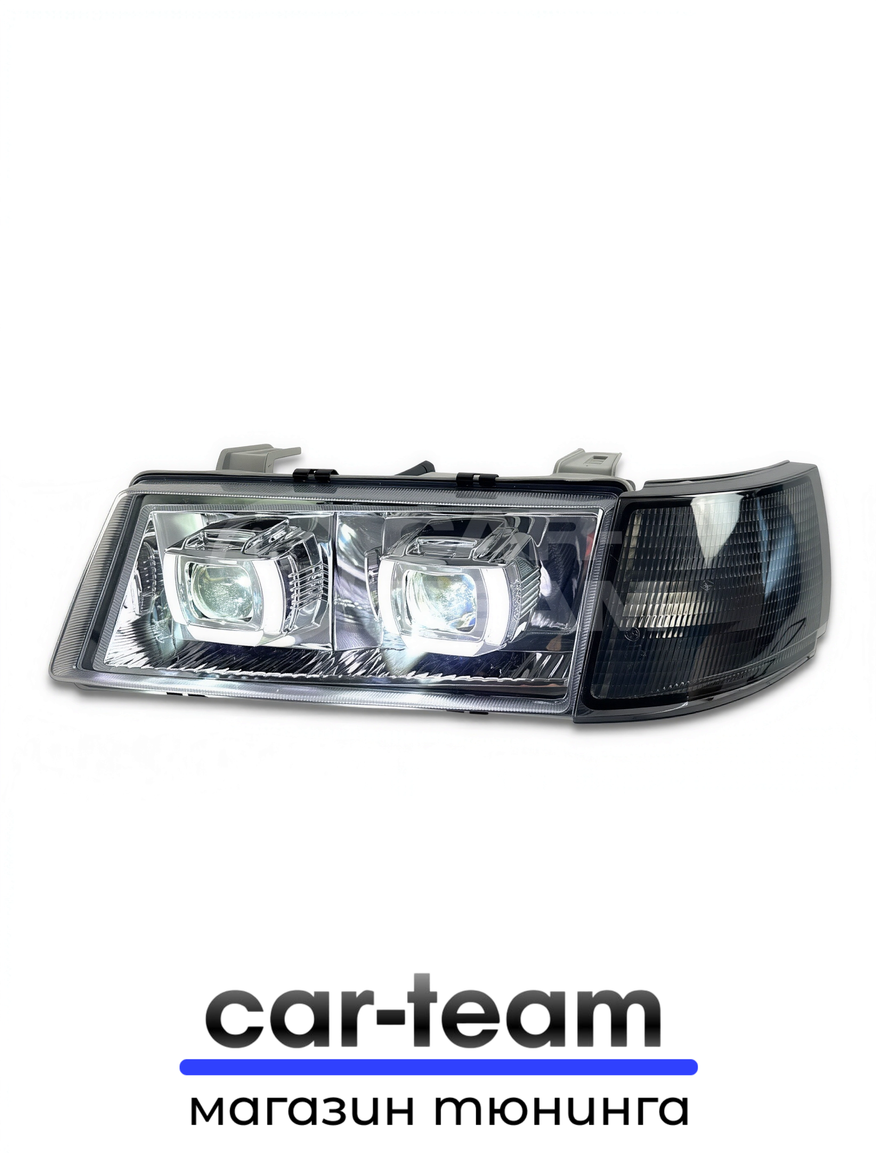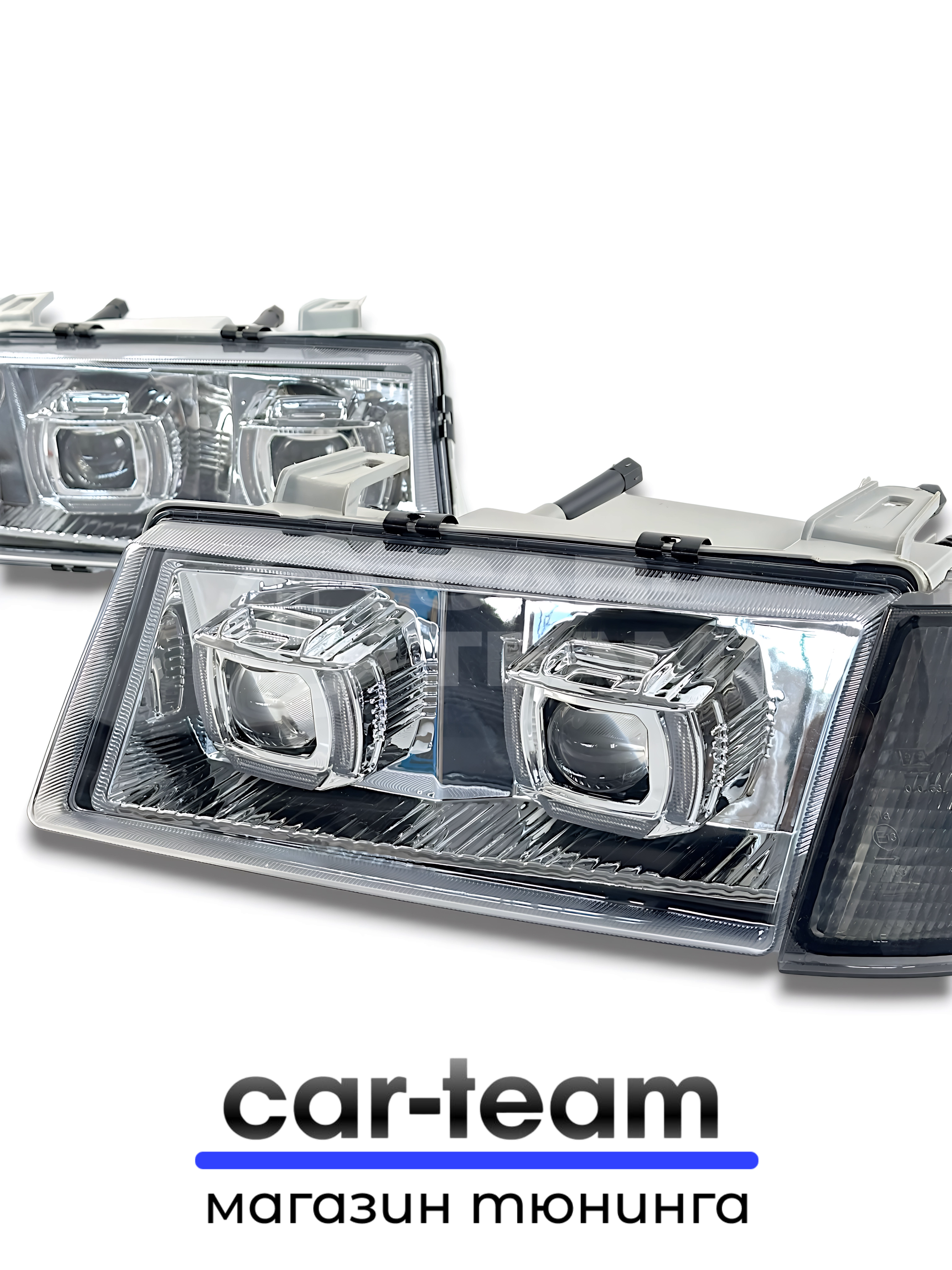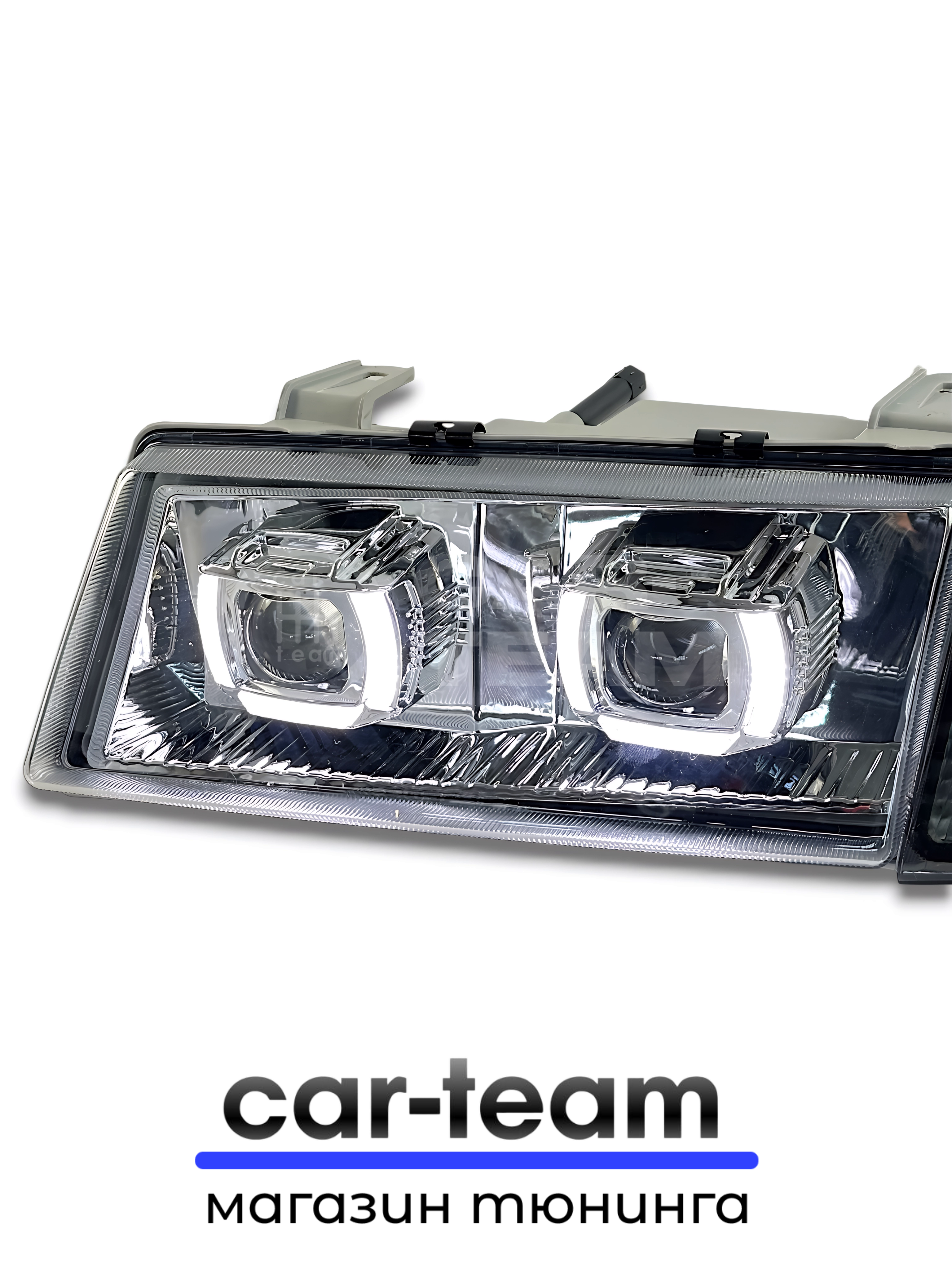 В онлайн-автомаркете CAR-TEAM.RU купить “Фары ВАЗ 2110, 2111, 2112 передние с белыми галочками в стиле BMW ver 2.0 c Bi LED модулями, хром маска, тонированные поворотники” довольно легко. Через “Корзину” вы сможете оформить заказ на любой приобретенный товар всего за несколько простых шагов.