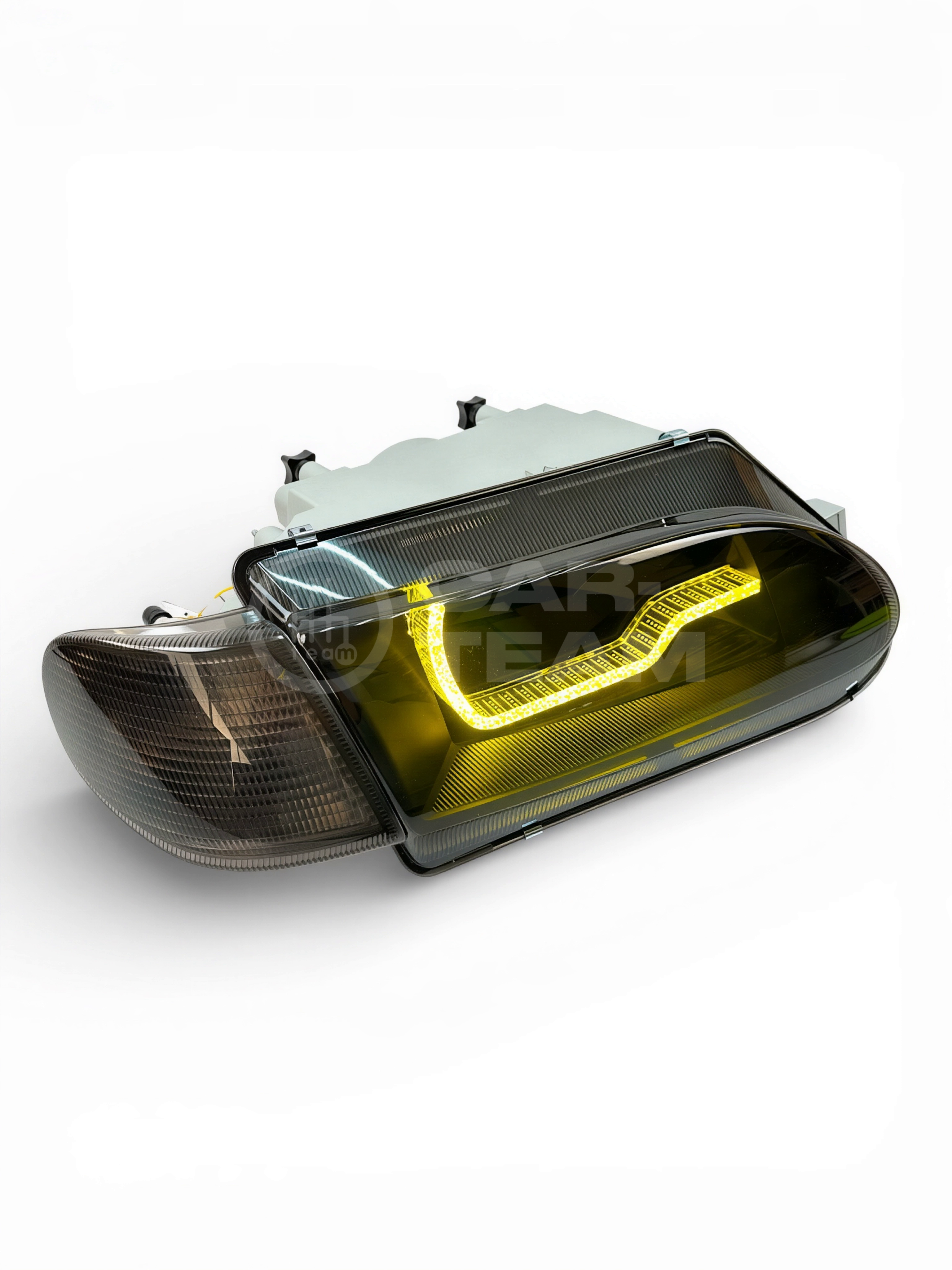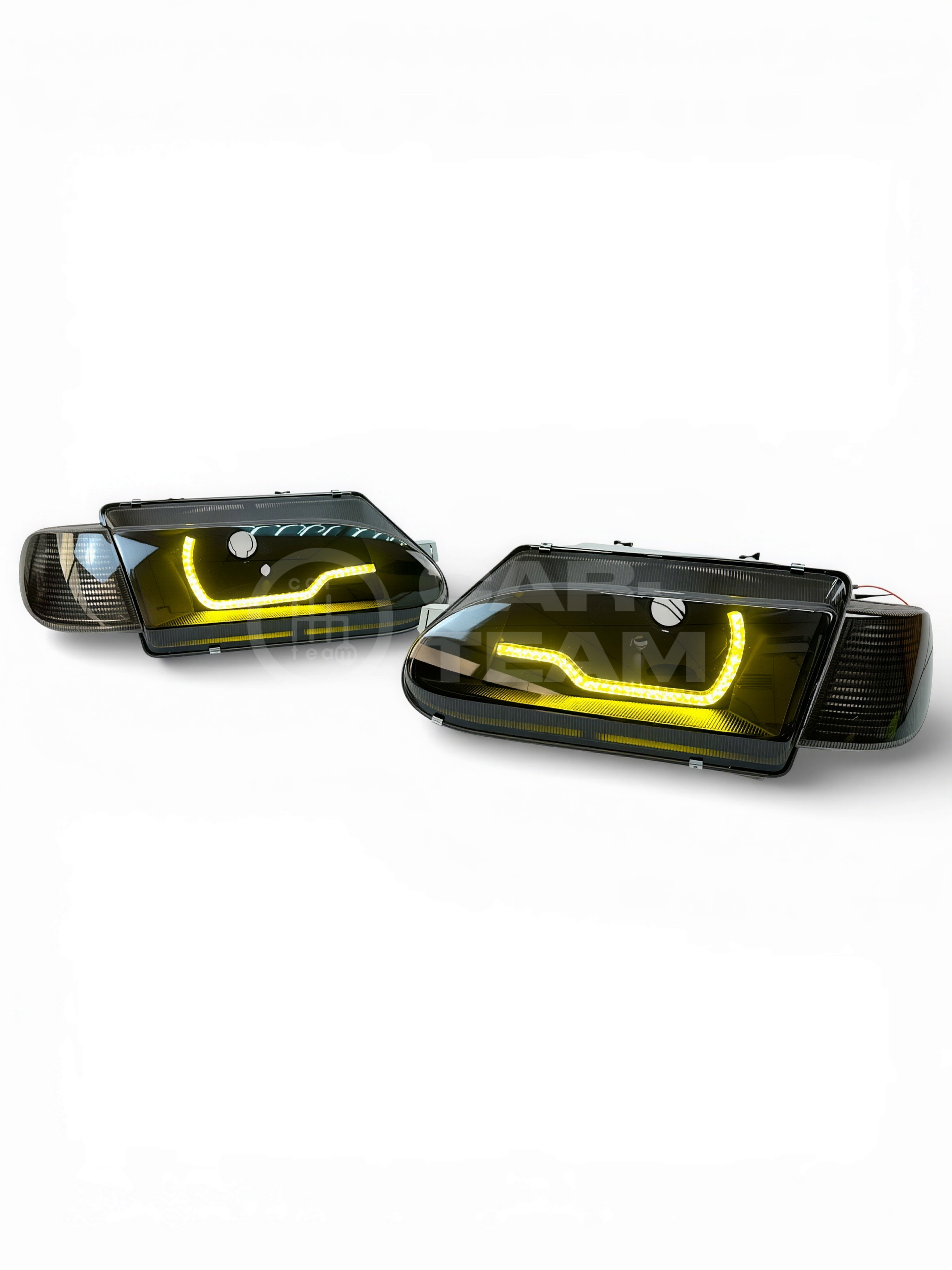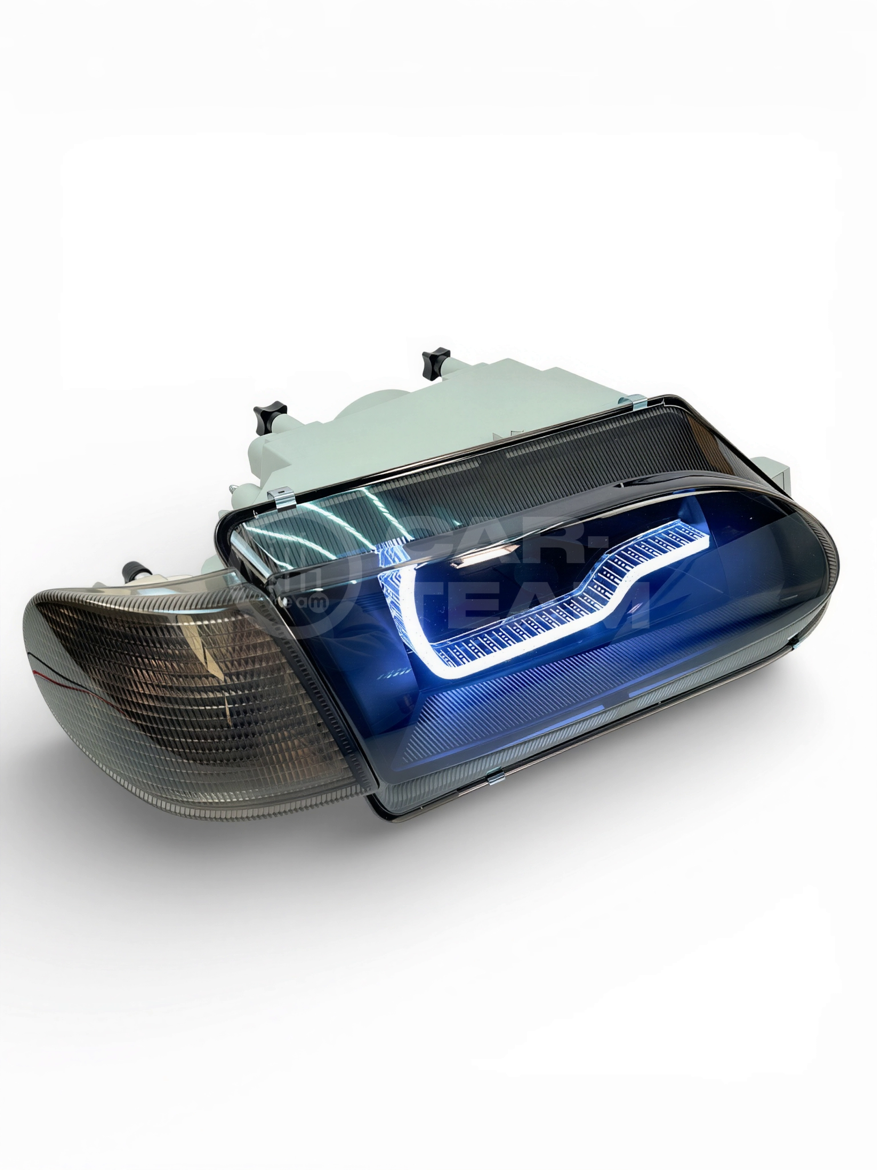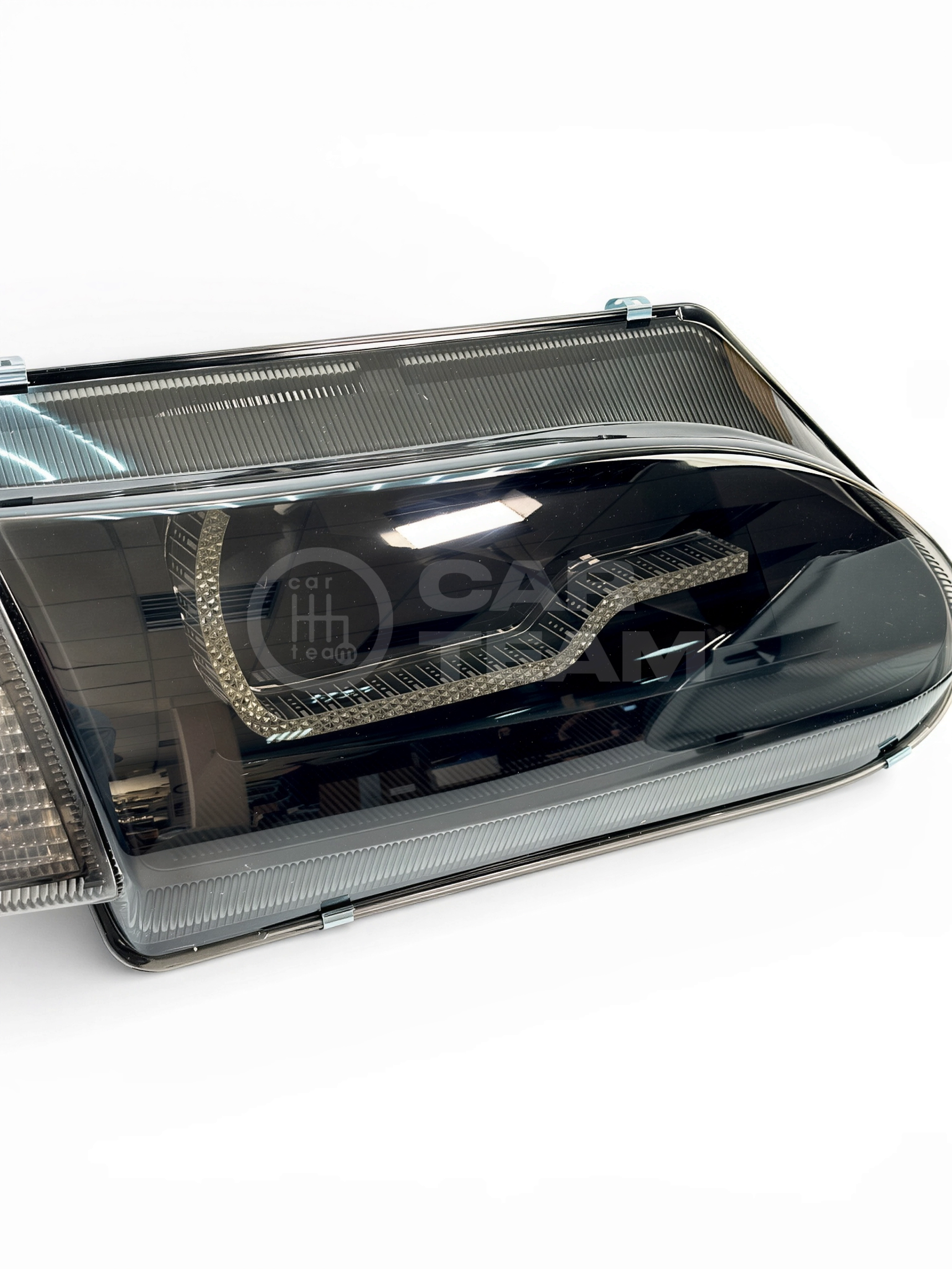 Конструкция фар сочетает обновленный дизайн, вдохновленный стилем AUDI, с практической функциональностью. Ходовые огни в стиле "Audi" придает автомобилю более современный и агрессивный вид, а тонированный повторитель поворота добавляет элегантности.