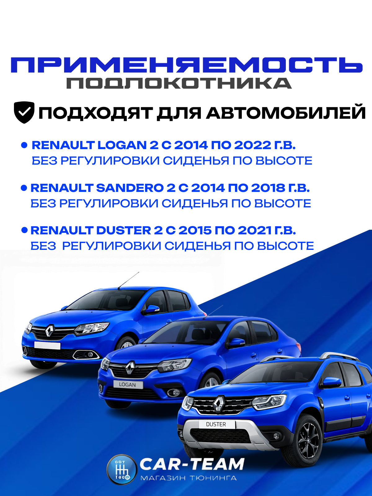 CAR-TEAM.RU дает гарантию на товары из своего каталога. “Подлокотник Renault Logan 2 2014-2018г.в., Sandero 2 2014-2018г.в., Duster 2 с 2015-2021г.в. из экокожи (без регулировки сиденья по высоте) "Аламар"” будет исправно работать по своему предназначению.