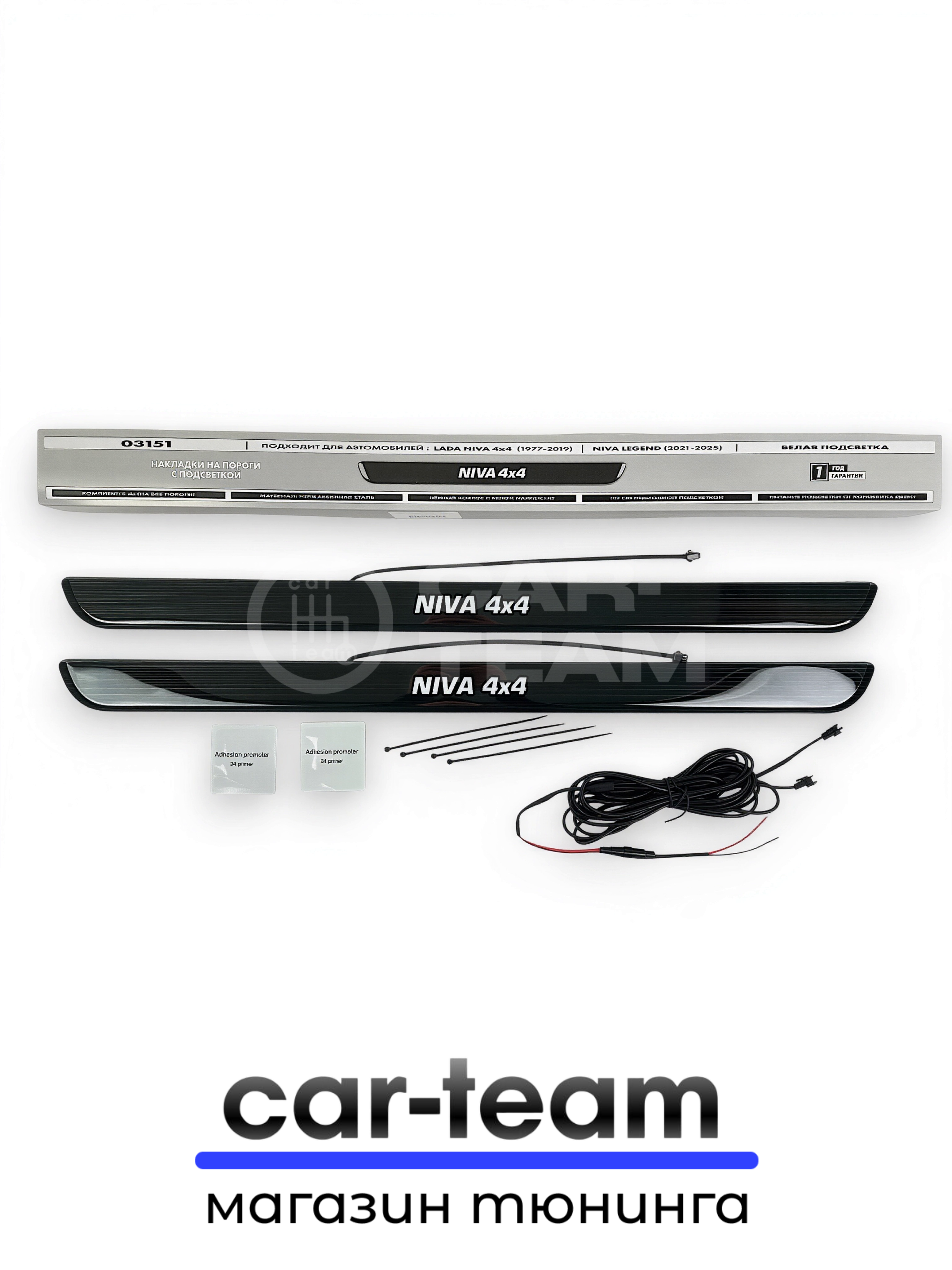 CAR-TEAM.RU дает гарантию на товары из своего каталога. “Накладки на пороги на Лада Нива светодиодные LED, ABS-пластик, белая подсветка (2шт)” будет исправно работать по своему предназначению.
