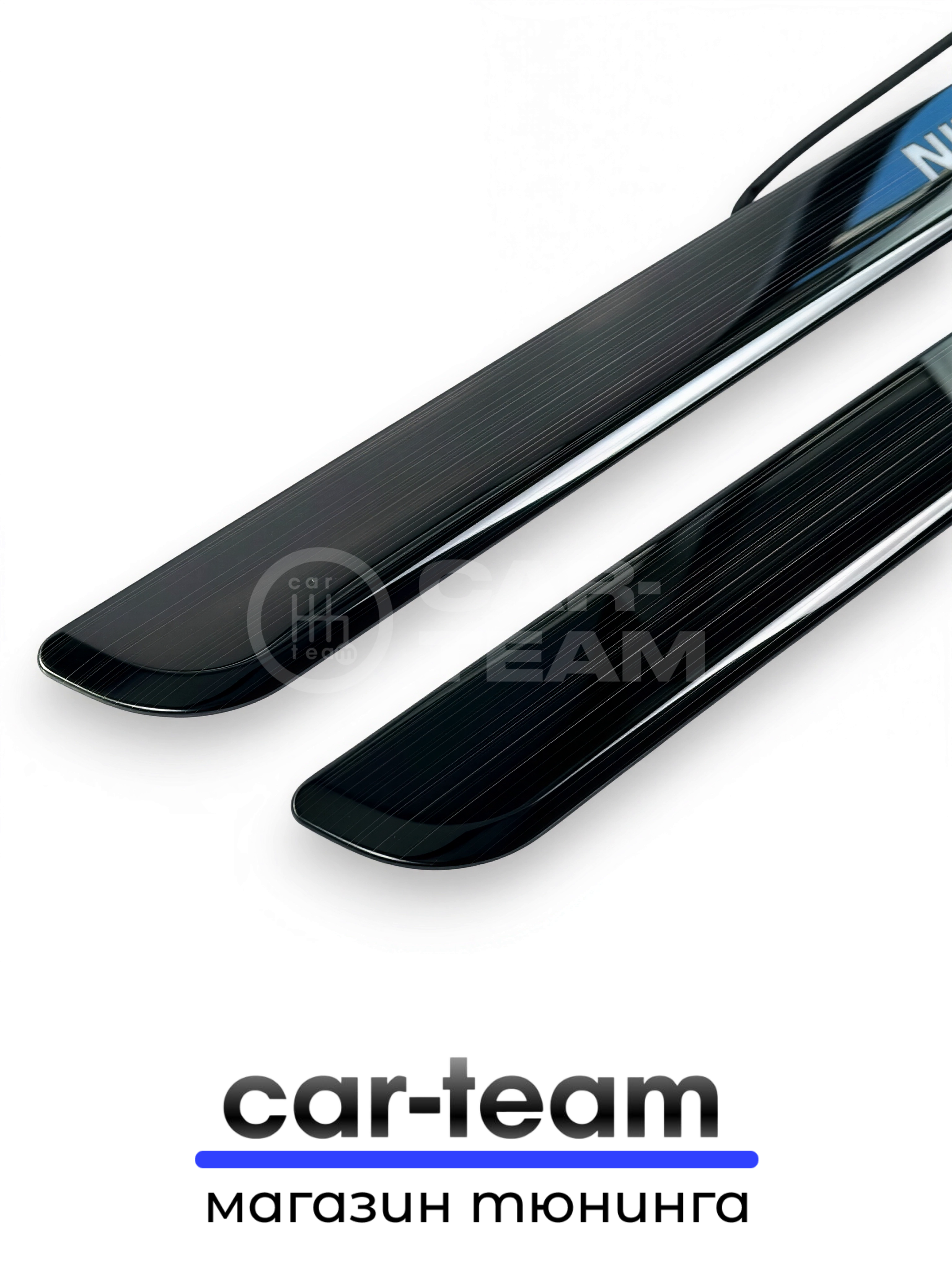 Установка накладок производится на подготовленную поверхность порогов. На накладках уже имеется прочный двусторонний скотч, обеспечивающий надежную фиксацию без сверления кузова.
